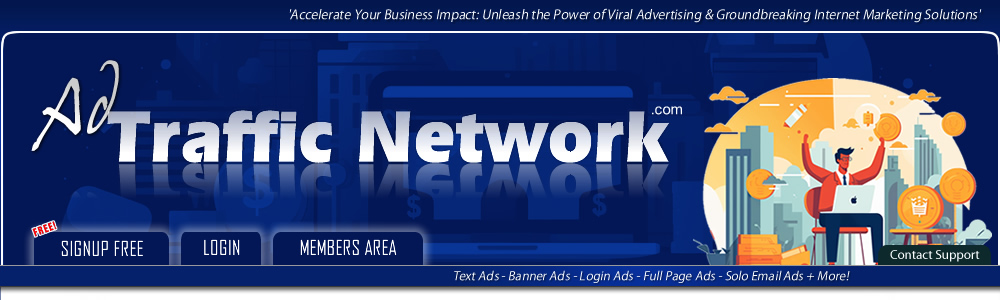 AdTrafficNetwork.com is not a multi-level marketing scheme or a get-rich-quick program, we are purely an advertising platform. We don't require you to have a website or sell any product to use our service. We do not require you to refer anyone to our site to use our service. You won't get rich by using our internet advertising program. This website uses cookies. Being a member and/or continued use of this website indicates that you accept our cookies policy. Thank you, we very much appreciate your support and being a member on our site! Privacy Center | Terms and Conditions | Earnings Disclaimer | Spam Policy | Privacy Policy © Copyright - AdTrafficNetwork.com ![]() | |||||||||||||||||||||||||||||||||||||||